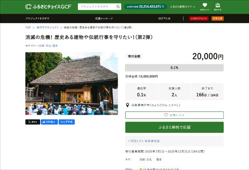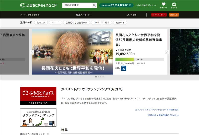 ①上の赤いボタン「神戸歴史遺産 ふるさと納税を利用した寄付はこちらから」をクリックして「ふるさとチョイスGCF」にアクセス!